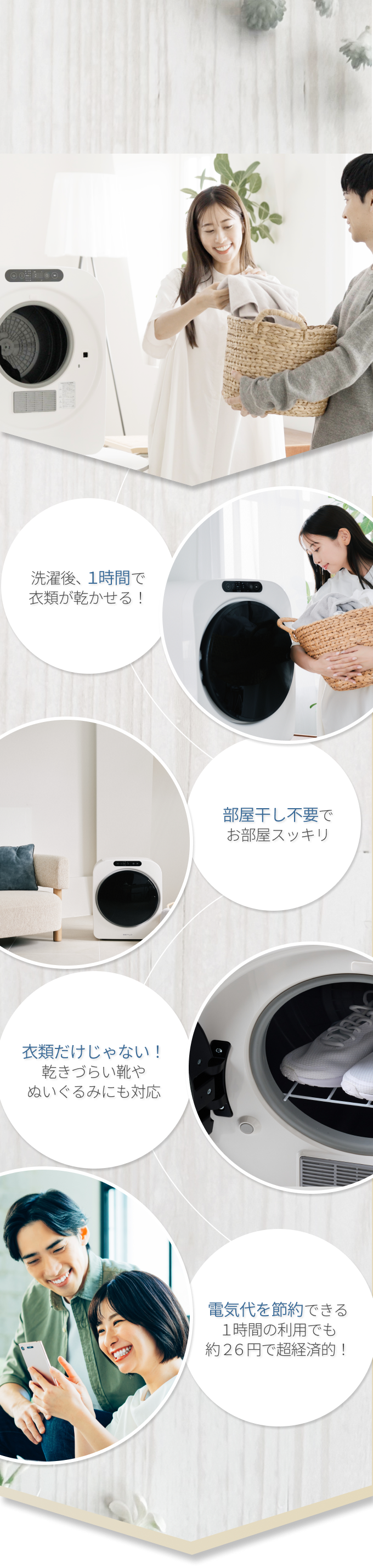 エスティロ乾燥機は一人暮らしの私にとって欠かせない家電になりました。部屋が狭いので置き場所が心配でしたが、コンパクトで邪魔になりません。タオルがふわふわになるのも嬉しい!忙しい朝でもすぐ乾くので、本当に助かっています。
